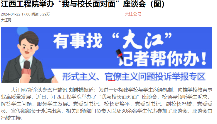 学校党委副书记、副校长冯赟指出,学校始终坚持以学生为本,把培养优秀学生作为学校高质量发展的目标之一。通过此次面对面座谈,同学们从学校发展的角度提出了许多问题,学校将认真吸收和采纳这些问题,并继续为同学们提供更好、更优质的教学资源。我们希望大家能够保持对学习的“始终如一”的态度,认真学习、深入思考、努力笃行。