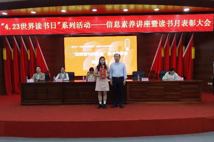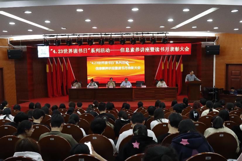 最美人间四月天,正是读书好时节。为深入学习贯彻党的二十大精神,响应习近平总书记关于“爱读书、读好书、善读书”的倡导,在第29个世界读书日到来之际,4月22日下午,beat365在学术报告厅一楼举行“4.23世界读书日”系列活动——信息素养讲座暨读书月表彰大会,助力广大师生从书本中汲取智慧和营养,体悟无限的阅读乐趣,形成爱读书、读好书、善读书的浓厚氛围。校党委委员、宣传部部长于永清出席,图书馆、学工处、团委相关工作人员参加活动。活动由图书馆馆长彭林华主持。