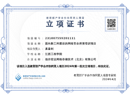 近日,教育部高等教育司发布了《教育部高等教育司关于公布2024年第一批产学合作协同育人项目立项名单的通知》,我校大数据与计算机学院院长巢喜剑主持的“面向新工科建设的网络安全师资培训项目”入选教育部产学合作协同育人项目2024年第一批立项项目。