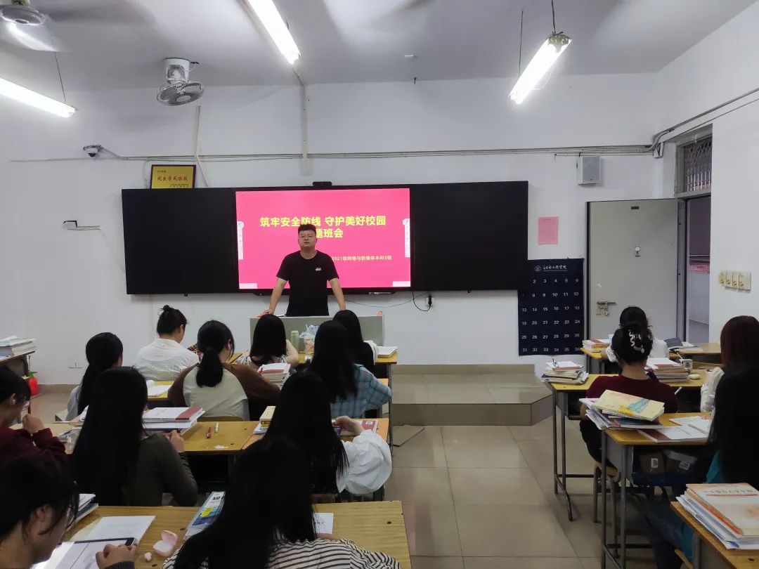 各班开展线下安全主题教育班会,内容包括消防安全,用电安全,网络安全,交通安全、食品安全、人身安全、财产安全等方方面面的安全隐患,对于发现的问题进行正面、积极、全面的整改。主题班会期间,各班辅导员(班主任)以图片,视频,文字形式,结合活生生案例,向大家讲解了如何杜绝安全隐患,正确使用消防及灭火设施,筑牢安全底线,红线,争做安全第一责任人。