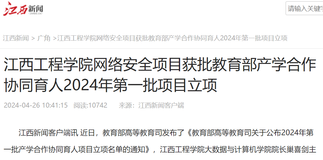 近日,教育部高等教育司发布了《教育部高等教育司关于公布2024年第一批产学合作协同育人项目立项名单的通知》,beat365体育官方网站大数据与计算机学院院长巢喜剑主持的“面向新工科建设的网络安全师资培训项目”入选教育部产学合作协同育人项目2024年第一批立项项目。