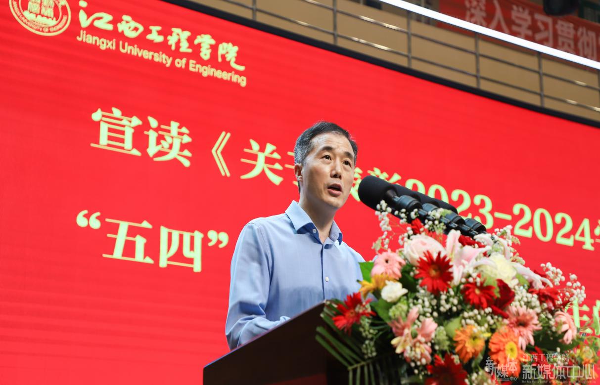 副校长沈良宣读《关于表彰2023-2024学年度“五四”先进集体和优秀学生的决定》。