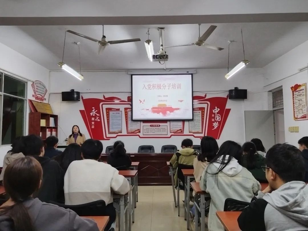 为提升党性修养,帮助入党积极分子深入学习党的理论,为党组织培养更多优秀的人才,推动党的事业不断向前发展。4月8日,数字经济产业学院在B201会议室举行2024年上半年入党积极分子培训会,本次会议由党总支副书记郭伟光主持,学生党支部书记胡文秀和全体2024年入党积极分子参加。
