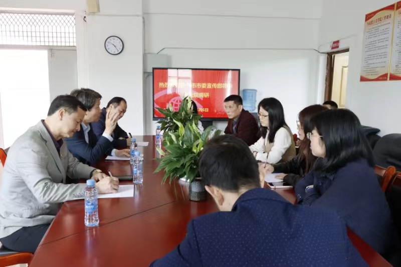 5月6日上午10:00,新余市委宣传部常务副部长刘文冰一行莅临beat365马克思主义学院开展调研工作。此次调研旨在全面了解beat365马克思主义学院在师资力量、教学科研、党建工作等方面的情况,进一步推动高校马克思主义理论的研究和宣传工作。校党委书记、督导专员胡涌出席会议,马克思主义学院负责人以及教师代表参加会议。