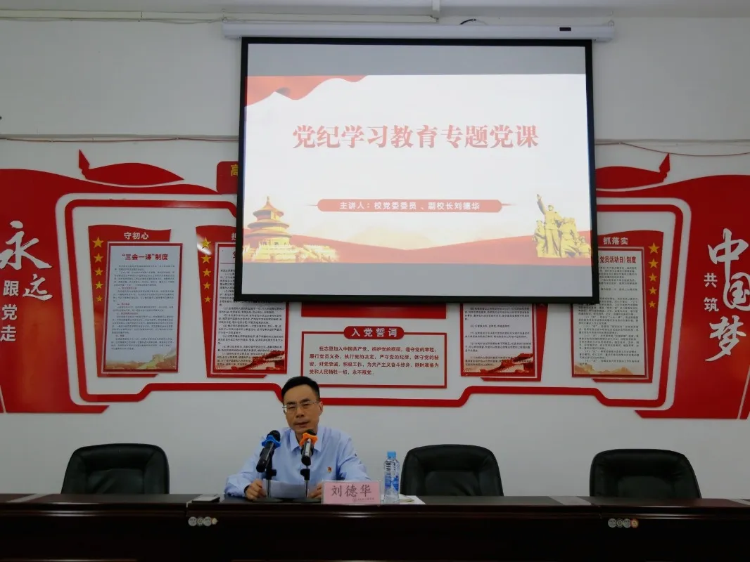 本次专题党课主要围绕《中国共产党纪律处分条例》应知应会的20个关键点展开。刘德华副校长从习近平总书记关于党的纪律建设展开论述,介绍了党纪学习教育的启动背景和相关要求,强调全体教师党员要深刻认识加强党的纪律建设的重要性、深入领会开展党纪学习教育的必要性,并就如何推动党纪学习教育走深走实做了具体阐述。