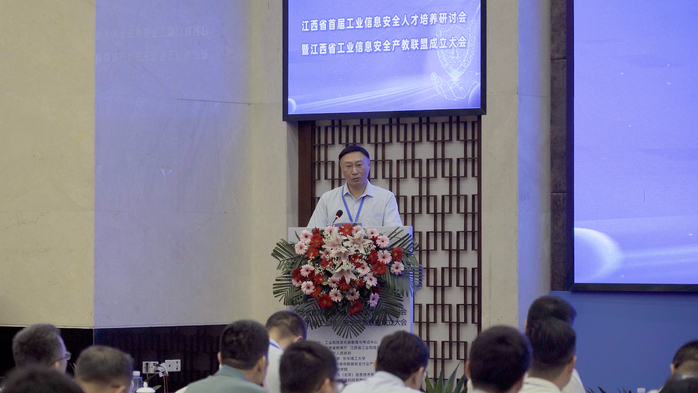南昌大学党委副书记刘耀彬作为牵头单位代表致辞。他表示,当前技术更新换代速度加快,新型安全威胁层出不穷,人才短缺问题也日益严重,工业信息安全产教联盟的成立,将在人才培养、技术创新、产业协同等方面实现新发展,成员单位要充分发挥自身优势、加强校企合作,从而实现人才培养和技术创新的良性循环,为推动工业信息安全行业健康发展贡献力量。