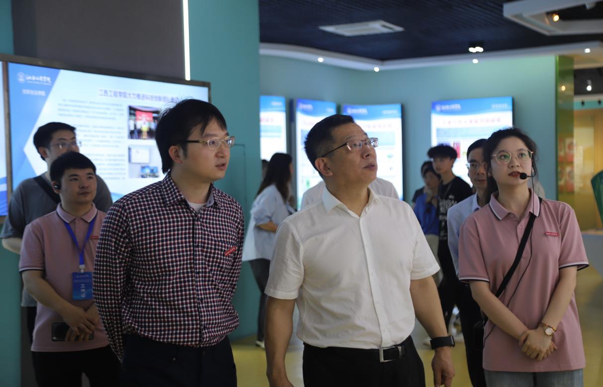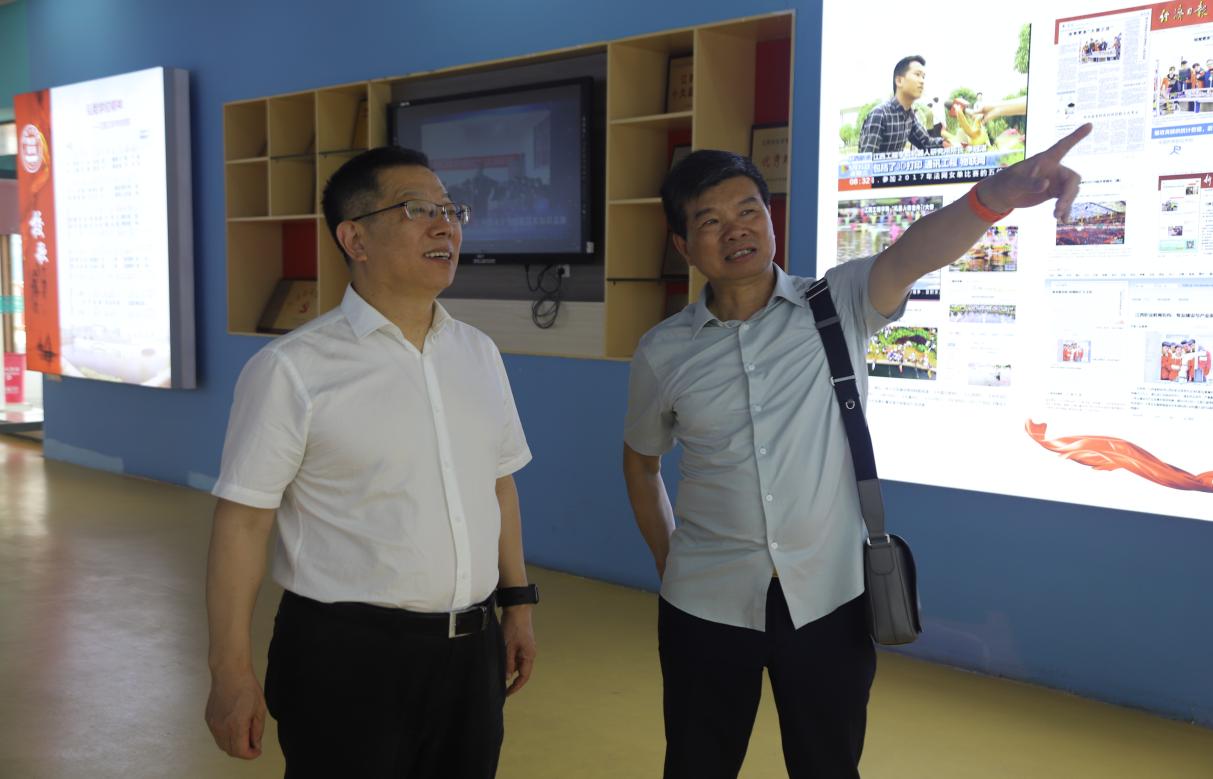 在校史馆,郝志强详细了解学校的发展历程、办学特色、人才培养特色,对学校为党和国家培养了一大批杰出人才、优秀校友反哺母校投资江西以及在办学治校中取得的重要成果表示肯定。