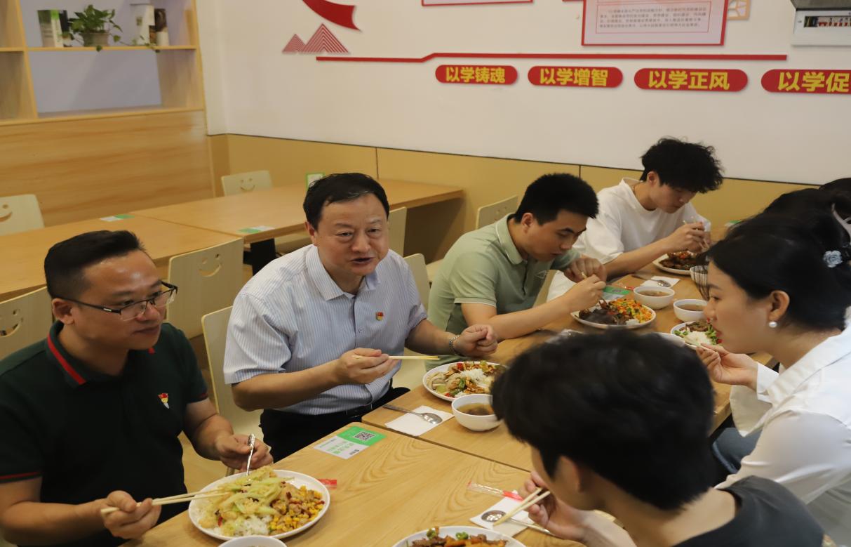 5月28日,校党委书记、督导专员胡涌走访所联系的学院开展“十个一”联系基层活动,与师生同桌用餐、同堂座谈,并走访学生宿舍,与同学们亲切交流、倾听心声、共话成长。学校有关部门负责人参加此次活动。