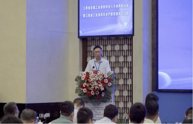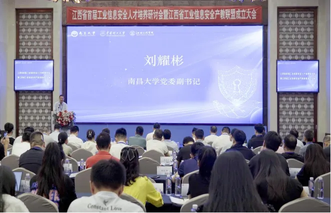 南昌大学党委副书记刘耀彬作为牵头单位代表致辞。他表示,当前技术更新换代速度加快,新型安全威胁层出不穷,人才短缺问题也日益严重,工业信息安全产教联盟的成立,将在人才培养、技术创新、产业协同等方面实现新发展,成员单位要充分发挥自身优势、加强校企合作,从而实现人才培养和技术创新的良性循环,为推动工业信息安全行业健康发展贡献力量。