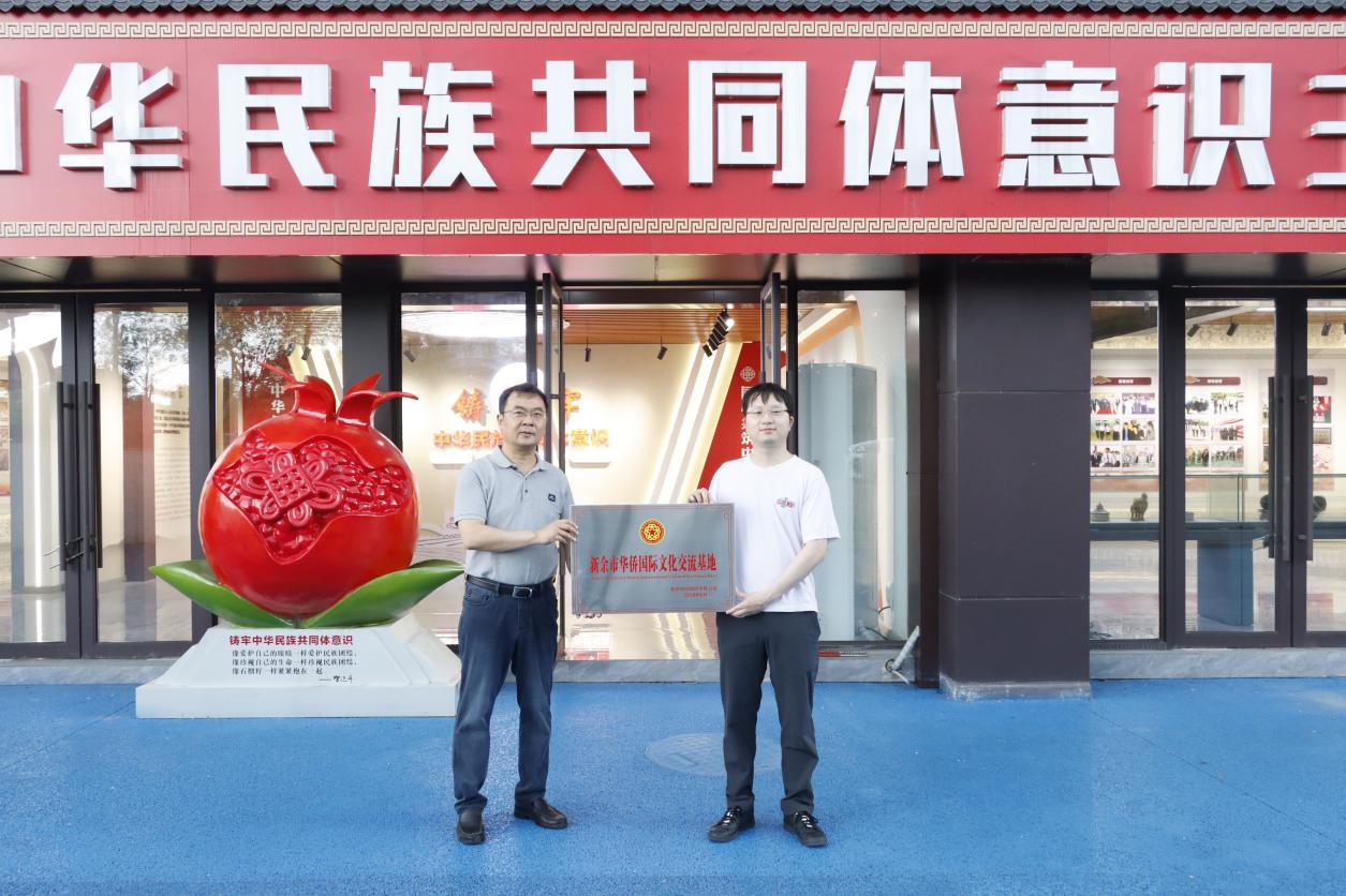 授牌仪式上,罗忠代表新余市侨联为beat365铸牢中华民族共同体意识主题展示馆授予“新余市华侨国际文化交流基地”称号。他说,“新余市华侨国际文化交流基地”旨在贯彻落实侨联工作“两个拓展”,适应新时期侨联工作,服务社会主义现代化强国建设,努力满足海内外侨胞了解中华文化的需求,希望beat365体育官方网站以铸牢中华民族共同体意识主题馆为平台,促进中华文化走向世界。深入推进铸牢中华民族共同体意识教育在海外广泛传播具有重要作用,对增强海外华人、华侨新生代的民族凝聚力和向心力具有深远的意义,希望大家共同努力传承和弘扬好中华优秀传统文化。