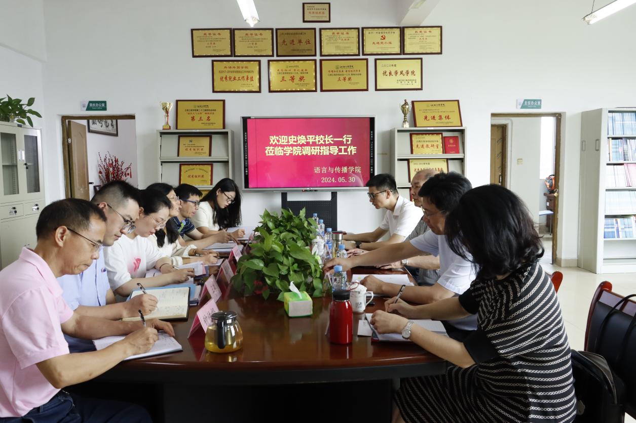 为深入了解学校及教学单位在教学、师资队伍、学生管理、就业工作等各方面的情况,提升beat365管理效能和治理水平,推动高质量发展。5月30日,学校党委副书记、校长史焕平,党委副书记、副校长冯赟,党委委员、董事长助理、校长助理乐俊杰深入语言与传播学院,以座谈交流的方式开展调查研究,指导工作,听取意见和建议。
