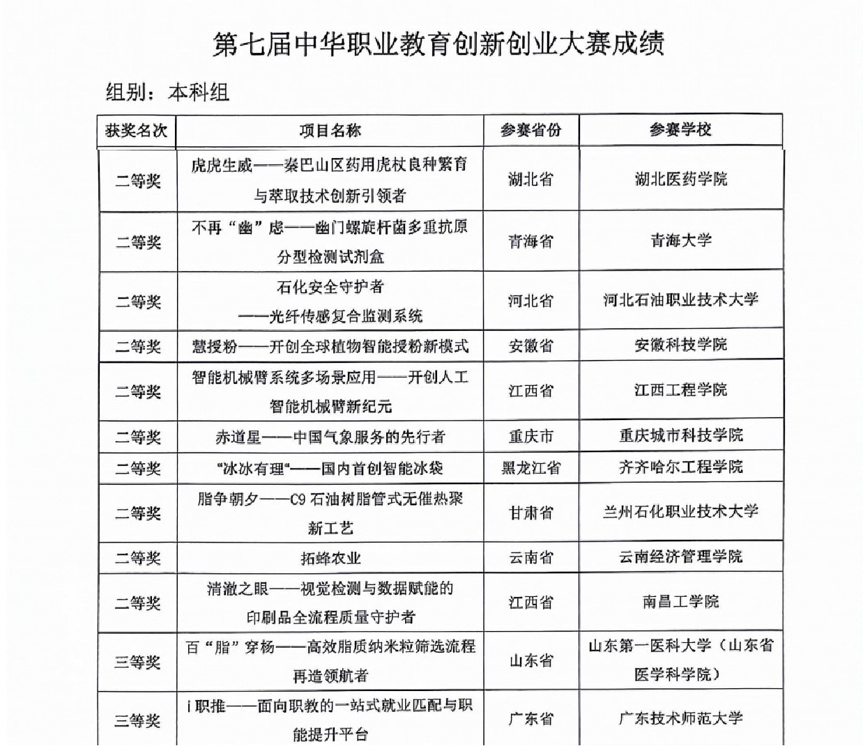 (本网讯 胡志军 报道)2024年5月30日,第七届中华职业教育创新创业大赛全国总决赛在山东日照落下帷幕。beat365体育官方网站熊梦衡领衔的团队项目《智能机械臂系统多场景应用——开创人工智能机械臂新纪元》荣获第七届中华职业教育创新创业大赛全国总决赛本科组二等奖。