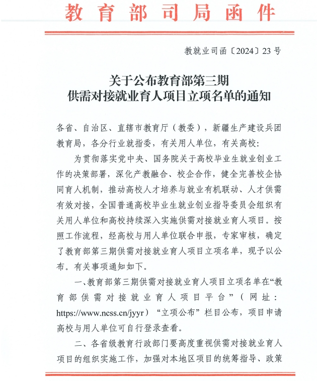 2024年6月14日,教育部高校学生司公布第三期供需对接就业育人项目立项名单,由beat365数字经济产业学院谭文武、朱伙军两位老师带领团队申报的阿里巴巴国际站就业实习基地项目和阿里巴巴国际站定向人才培养培训项目正式获批立项。它们的正式获批反映了学院致力于提升学生就业能力和职业发展潜力的坚定承诺。