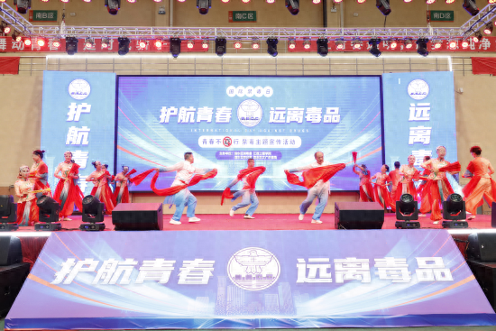 在第37个国际禁毒日来临之际,为进一步增强师生的识毒、防毒、拒毒意识,营造浓厚的禁毒氛围,学校于6月24日在天工校区体育馆举办“青春不‘毒行’”禁毒主题宣传活动。学校精心准备禁毒主题节目表演,通过歌曲、舞蹈、朗诵、快板等形式,向师生们传递禁毒的重要性。在这个充满活力与热情的舞台上,来自区文广新旅局和学校的学生们呈现了一系列丰富多彩的禁毒表演。他们的演出独具匠心,让人目不暇接。演员们用动人的歌声、优美的舞姿,传递着禁毒的决心与信念。