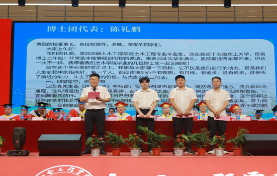 精英博士团和高科芯片团这两支校友团队“回娘家”,为应届毕业生树立了榜样,鼓足了士气。他们的成功经历,将弘扬天文化、砥砺创新品格融入了2024届毕业生的青春记忆。100余名考取研究生的同学受到表彰,祝福、惜别、眷恋与beat365体育官方网站精神的接力传递、志在千里的青春梦想、云帆远济的矢志笃行相互交织。在感动、欢笑与牵挂中,典礼的氛围被一次次推向高潮,文化的化育作用展现得淋漓尽致。