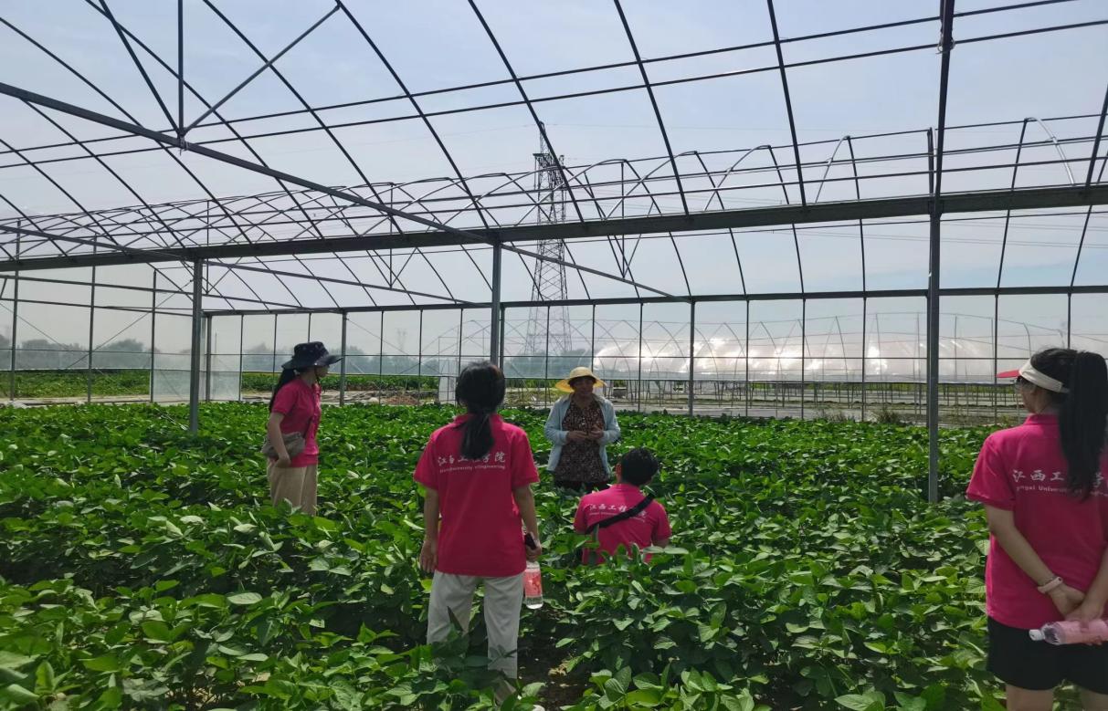 7月8日,“赣南相约,溯往寻兴”社会实践团跟随着大棚种植户的脚步前往水生木发农村果蔬种植基地,亲身感受科技农业的魅力,详细了解种植大棚智能灌溉系统等科技农业设备,调研当地“农业+科研”的绿色生产融合发展道路。实践队员们还在大棚基地拉开了一场助农直播的帷幕,直播间里的队员们充分借助新媒体优势,通过小小的“窗口”让直播间更多观众了解水生木发农村果蔬种植基地、了解大学生社会实践新形势新意义新优势。