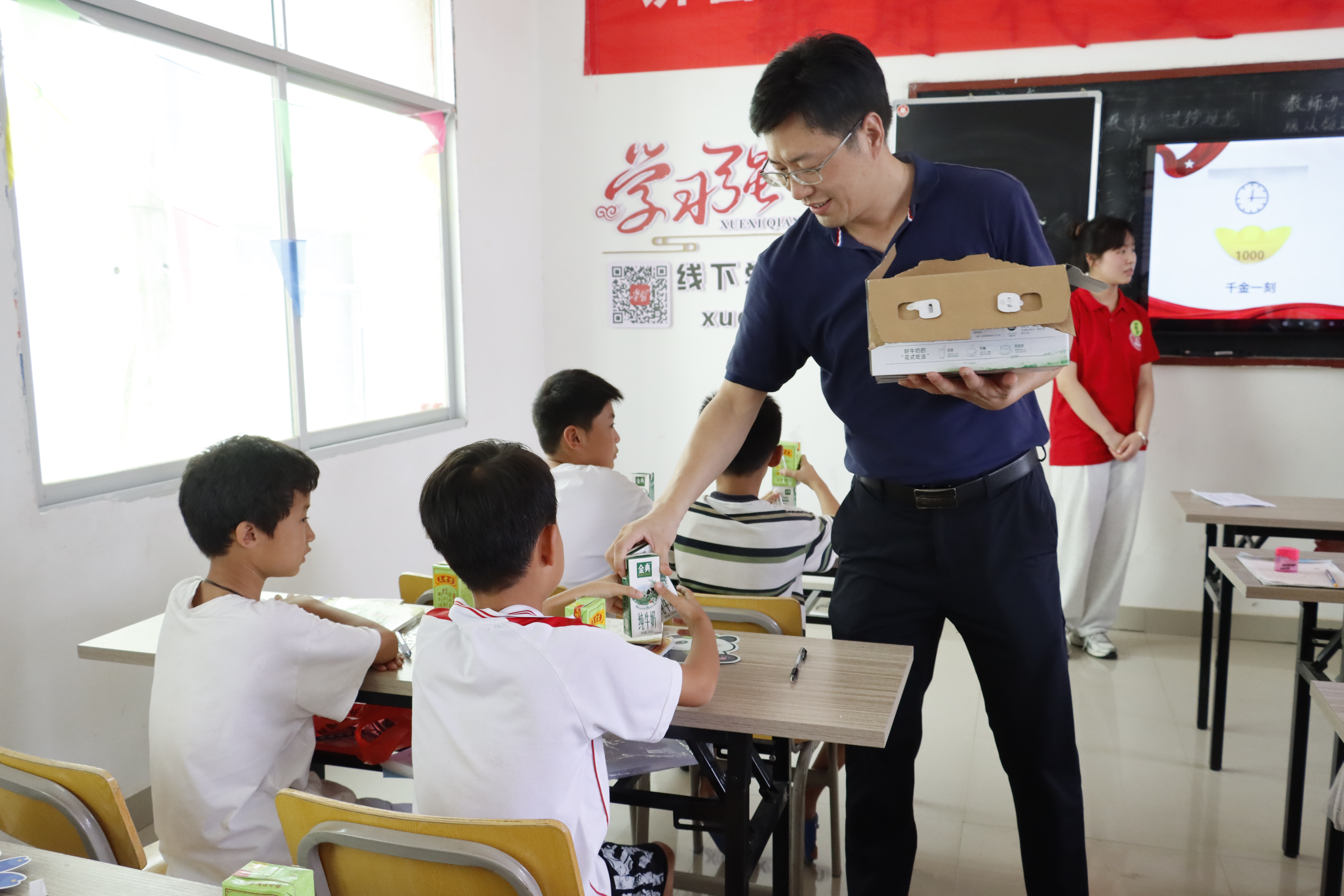 随后,胡涌书记一行抵达洞村乡新时代文明实践站的教育教学现场,了解“青葵向阳,知行新余”红色长征队成员现场教育教学情况。胡涌书记向孩子们赠送了笔记本、文具等学习用品,还送上牛奶与蛋糕等食品,表达了亲切的关怀与鼓励。“孩子们,你们是祖国的未来,是家乡的希望。长大后要成为有理想、有道德、有文化、有纪律的‘四有’新人”他亲切地嘱托孩子们要努力学习,树立远大理想,长大后要成为对社会有用的人,为家乡的发展贡献自己的力量。同时,胡涌书记鼓励学校志愿者们积极参与推广普通话,发挥示范模范带头作用,做好普通话的“推广员”。