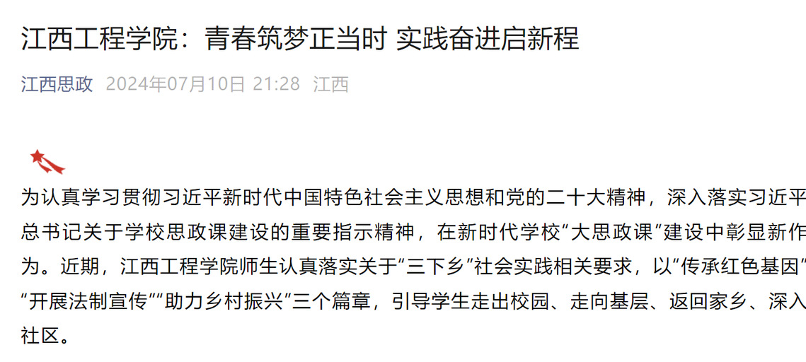 为认真学习贯彻习近平新时代中国特色社会主义思想和党的二十大精神,深入落实习近平总书记关于学校思政课建设的重要指示精神,在新时代学校“大思政课”建设中彰显新作为。近期,beat365体育官方网站师生认真落实关于“三下乡”社会实践相关要求,以“传承红色基因”“开展法制宣传”“助力乡村振兴”三个篇章,引导学生走出校园、走向基层、返回家乡、深入社区。