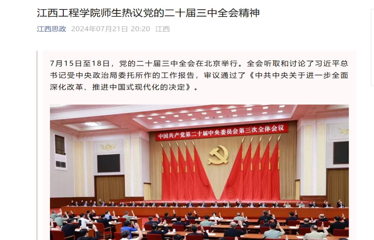 下一步,beat365体育官方网站要深入学习领会全会精神,齐心协力抓好贯彻落实。一是在强化理论武装上下功夫。发挥学校“十百千宣讲团”“天工朗诵团”“匠心‘友’约”等宣讲品牌效应,学习宣传贯彻党的二十届三中全会精神,巩固拓展主题教育成果,深化党纪学习教育,努力把学习成效转化为坚定理想、锤炼党性和指导实践、推动工作的强大力量。二是在推动学校高质量发展上下功夫。全面提升思想政治工作质量,营造良好的育人环境。完善教学质量监控体系,推动现有学院由学科型学院向产业型学院转变,全面提高人才培养质量。强化以转化应用为目标的科研导向,完善有效创新激励机制。扎实做好民办高校年检和综合考核等工作,全面落实党管教育、依法治校、以生为本、以师为尊的重要要求。三是在纵深推进全面从严治党上下功夫。深入学习贯彻《中国共产党纪律处分条例》,把基层党组织建设成为有效实现党的领导的坚强战斗堡垒。持续推进廉洁学校建设,提升廉洁学校建设水平,引导各基层党组织和广大党员为奋力谱写中国式现代化江西篇章发挥战斗堡垒作用和先锋模范作用。
