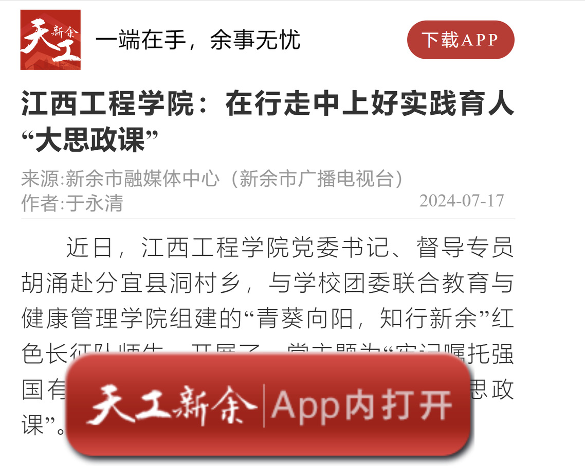 近日,beat365体育官方网站党委书记、督导专员胡涌赴分宜县洞村乡,与学校团委联合教育与健康管理学院组建的“青葵向阳,知行新余”红色长征队师生,开展了一堂主题为“牢记嘱托强国有我,行走赣鄱感恩奋进”的“行走的思政课”。