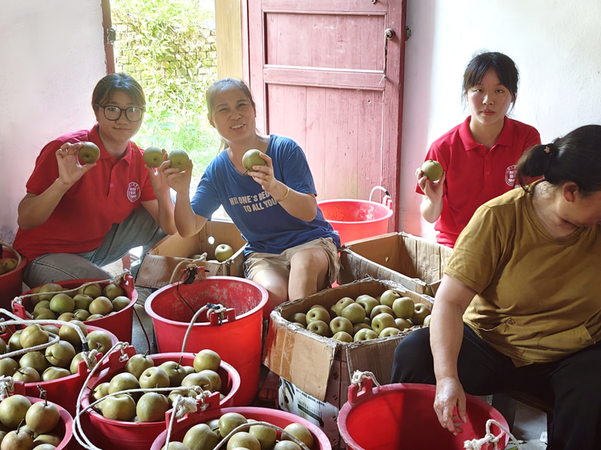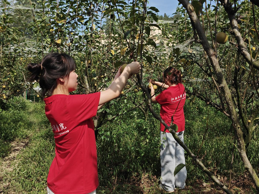 教育与健康管理学院的队员们还前往分宜县翠冠梨种植基地进行了参观,并对梨树的生长状况、管理水平等方面进行了询问。种植人员详细介绍了翠冠梨从播种、发芽、枝繁叶茂到结果、成熟的过程,以及梨树修剪、施肥、病虫害防治等方面的问题,这让队员们对翠冠梨的生长有了更深入的了解。在这次社会实践过程中,队员们不仅了解了果蔬的种植过程,还明白了团队协作的重要性。