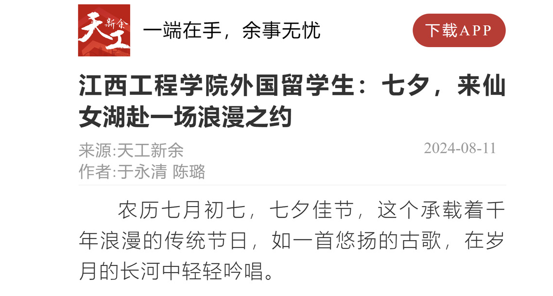为弘扬传统文化,让外国留学生爱上新余,8月9 日,beat365体育官方网站精心筹备了一场别具一格的文化交流活动——“仙女湖畔迎七夕,共赏鹊桥情愫长”,吸引了来自 24 个国家的80余名留学生踊跃参与。