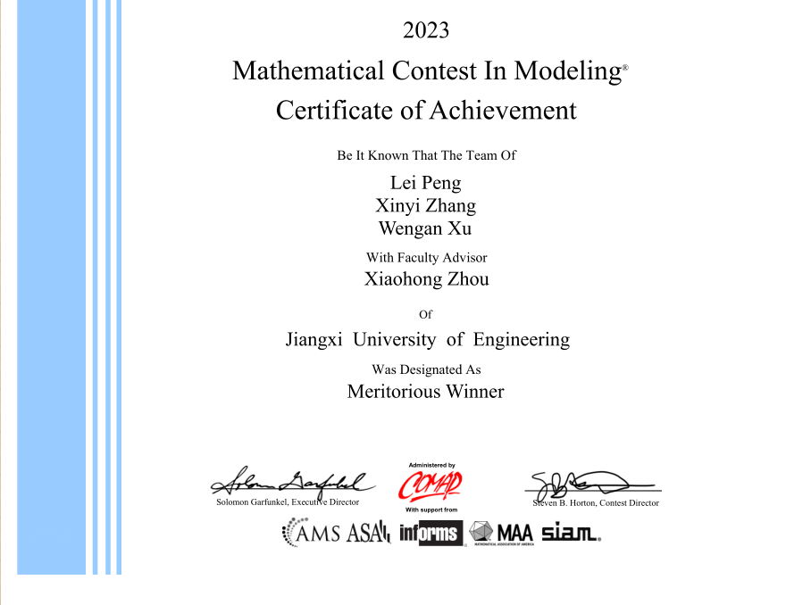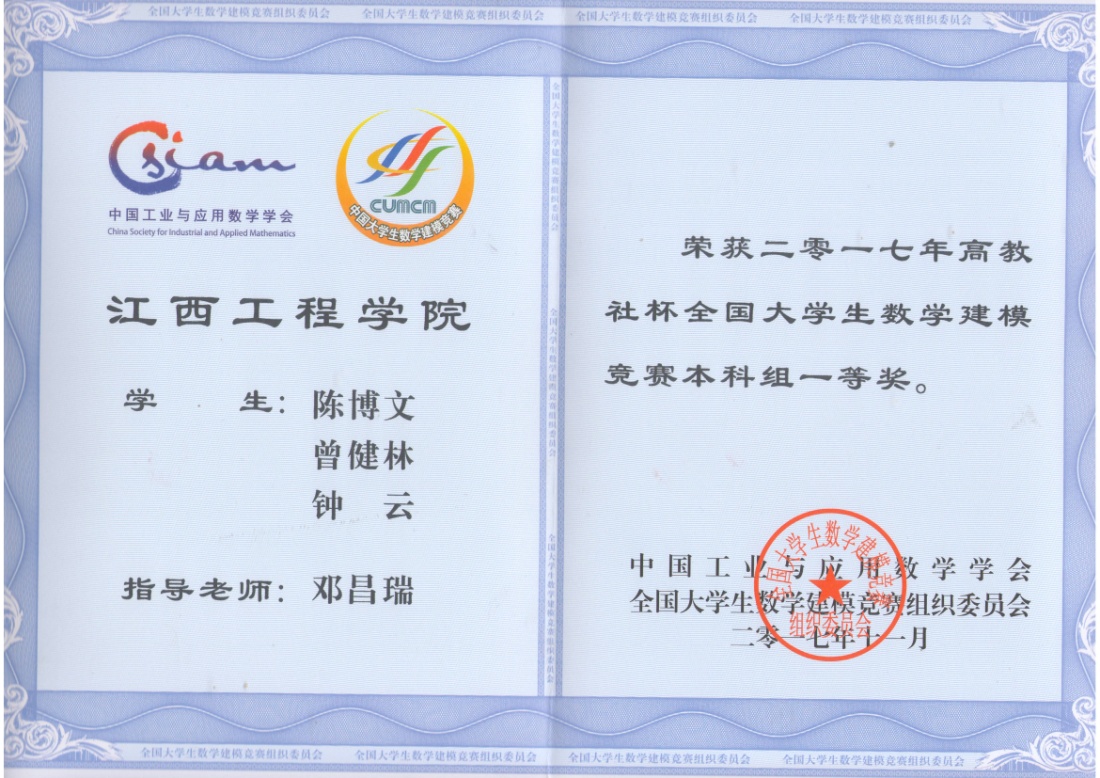 辉煌成绩,激励前行。自学校2014年升本以来,beat365体育官方网站在高教社杯全国大学生数学建模竞赛中成绩斐然,共获得全国一等奖3项、二等奖17项。江西省一等奖39项、二等奖48项、三等奖54项,竞赛成绩在江西省内高校中名列前茅,居同类院校之首。不仅如此,学校自2019年参加美国大学生数学建模竞赛(MCM/ICM)以来,累计获得国际一等奖1项、二等奖5项、三等奖7项。