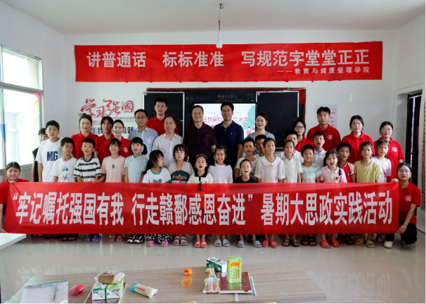 7月10日下午,校党委书记、督导专员胡涌赴新余市分宜县洞村乡,与学校团委联合教育与健康管理学院组建的“青葵向阳,知行新余”红色长征队师生,共同开展了一堂别开生面的“行走的思政课”,主题为“牢记嘱托强国有我,行走赣鄱感恩奋进”。