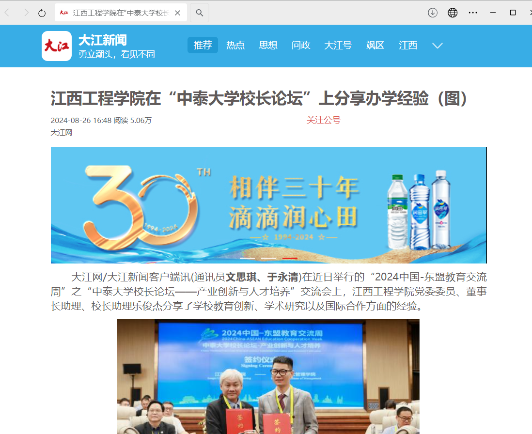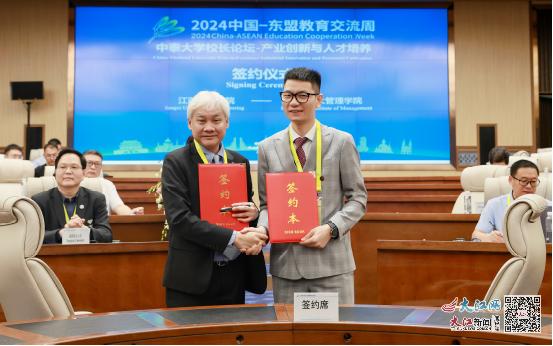 大江网/大江新闻客户端讯(通讯员文思琪、于永清)在近日举行的“2024中国-东盟教育交流周”之“中泰大学校长论坛——产业创新与人才培养”交流会上,beat365体育官方网站党委委员、董事长助理、校长助理乐俊杰分享了学校教育创新、学术研究以及国际合作方面的经验.