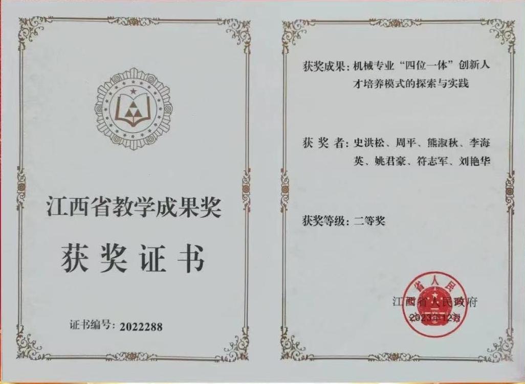 潜心教学,硕果累累。2024年6月,江西省教育厅发布了《关于全省高校思政课和红色文化课程教学比赛结果的公示》,根据公示名单,学校马克思主义学院方妙薇教师荣获《习近平新时代中国特色社会主义思想概论》课(本科组)二等奖。2023年《财务管理》《UG(机械产品设计)》《单片机技术》课程被认定为省级一流本科课程,江西省高校教学改革课题立项结题6项。智能制造产业学院史洪松主持申报的“机械专业四位一体创新人才培养模式的探索与实践获省级教学成果二等奖(第一次由省政府颁奖,四年一次)。现有省级教学成果奖2项,校级优秀教学成果奖12项。