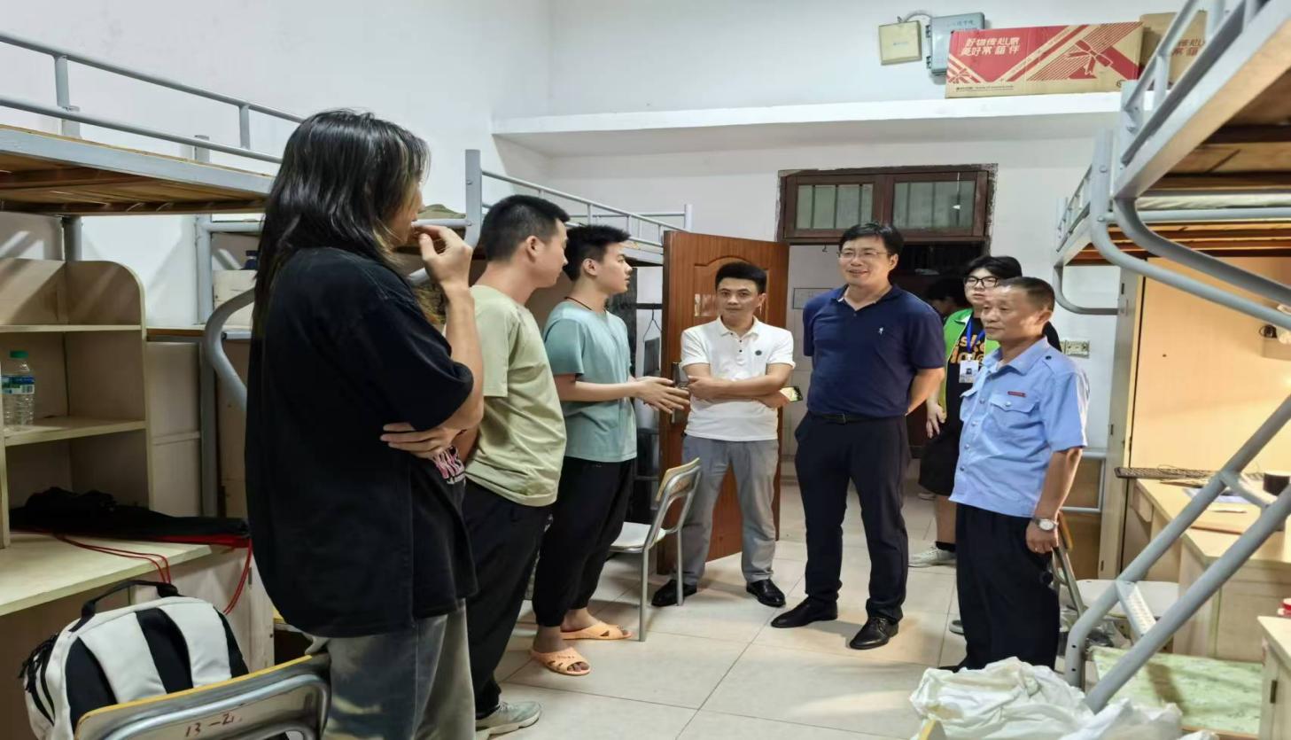 8月30日晚,校党委副书记、副校长冯赟深入天工校区新生宿舍,与同学们拉家常、聊近况、话学业,送上来自学校的关怀与温暖。学工处、学生公寓管理中心负责人等陪同走访。
