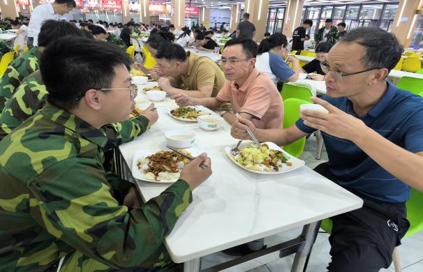 走访结束后,刘德华提出要和新生们一同前往食堂吃晚饭,考察食堂的就餐环境和菜品价格。在吃饭过程中,刘德华依旧在关心新生们是否能习惯学校内的饭菜,并询问新生们对食堂菜价有何看法。