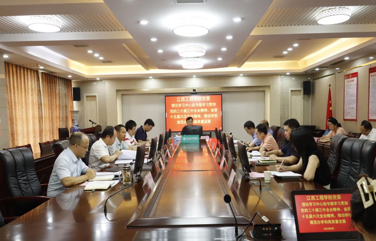 党委副书记、副校长冯赟传达学习习近平总书记在党的二十届三中全会上所作的工作报告和重要讲话、习近平总书记关于《中共中央关于进一步全面深化改革、推进中国式现代化的决定》的说明、《中共中央关于进一步全面深化改革、推进中国式现代化的决定》《中国共产党第二十届中央委员会第三次全体会议公报》《中国共产党江西省第十五届委员会第六次全体会议决议》《中共江西省委十五届六次全会举行 省委常委会主持 省委书记尹弘讲话》。