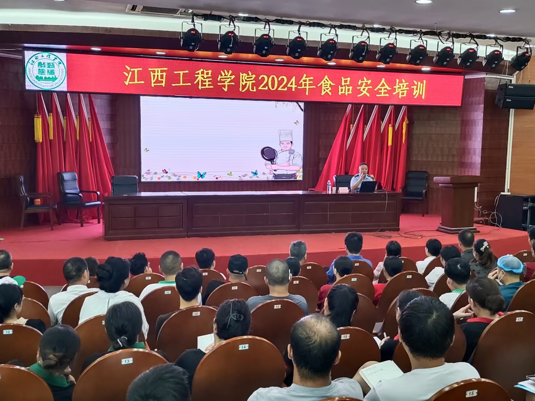 为进一步增强beat365餐饮业队伍的食品安全知识,强化主体从业人员食品安全意识,保障师生舌尖上的安全。9月12日下午,学校后勤管理处在天工校区学术报告厅开展2024年食品安全培训,校党委委员、校长助理陶小兵出席并做动员讲话。培训由后勤管理处处长章欢乐主持,全校共136名管理人员及餐饮从业人员参加培训学习。