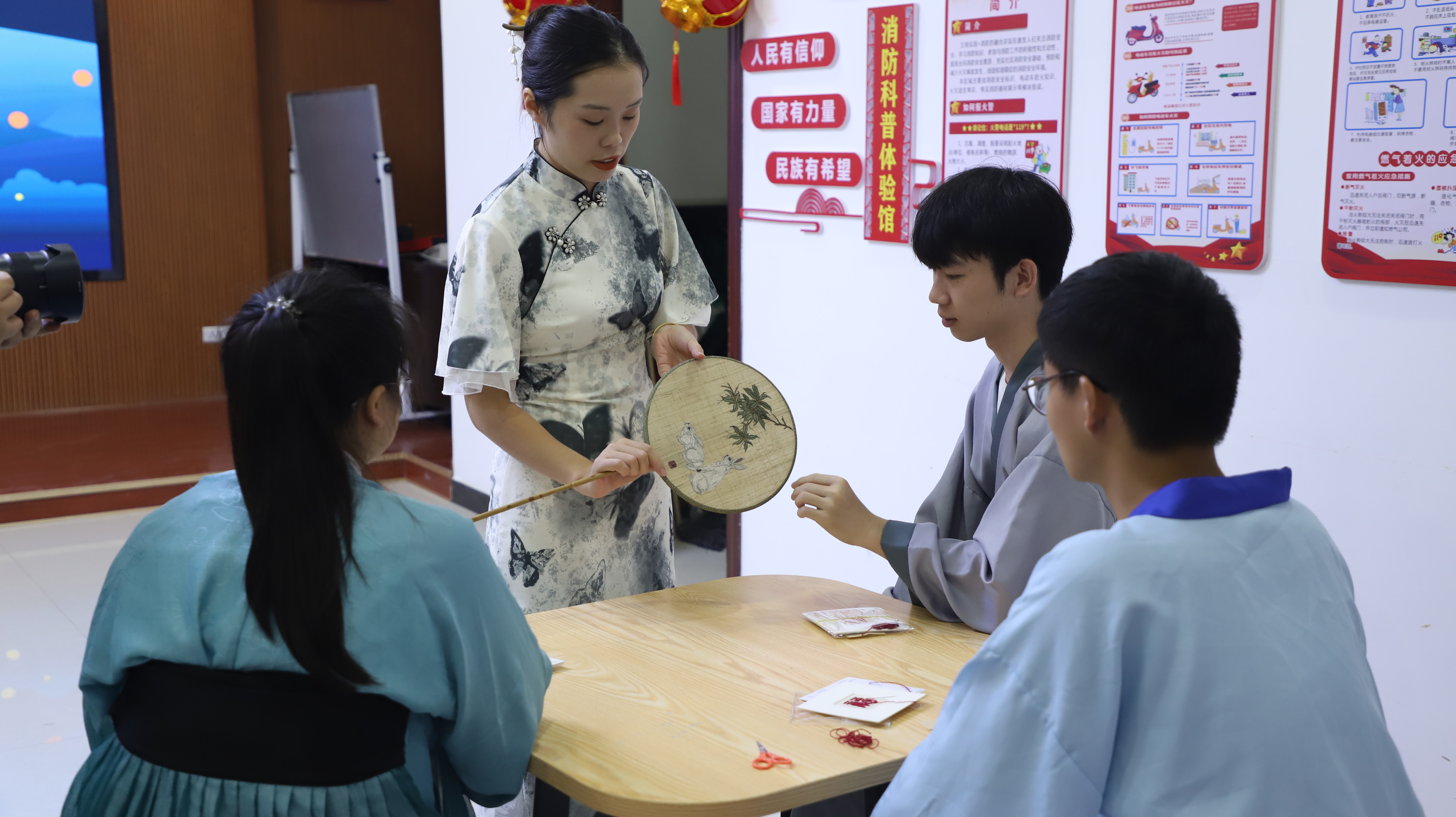 夏布绣,是一个鲜有的以绣地材质命名的绣种,孕育于江西省新余市这片文化沃土,夏布绣以麻为纸,以针作笔、以线代墨的刺绣风格,融合了夏布的自然肌理及绘画的独特神韵,因此夏布绣也被称之为是麻布上的水墨丹青。在虎山社区,同学们和社区居民在学习夏布绣的历史背景、制作工艺和艺术价值后,充分发挥创意,将自己对节日美好的祝愿刺绣在团扇上,切身感受了一次古典中国美学的独特魅力。“在夏布文化的熏陶下,我们感受到了中国传统文化的深厚底蕴和独特魅力。它让我们重新审视自己的文化传统,激发我们对传统文化的热爱和尊重。”2021级金融工程本科1班詹语凡如是说道。