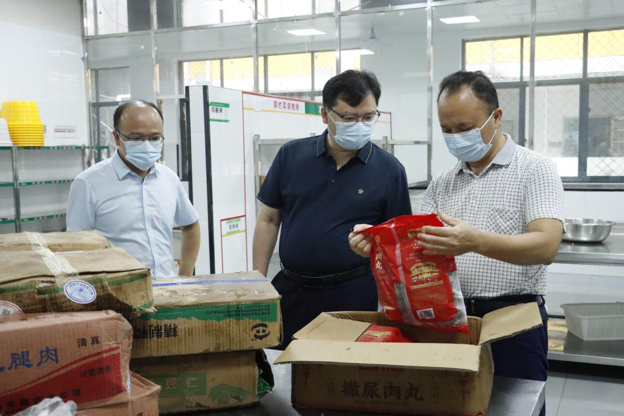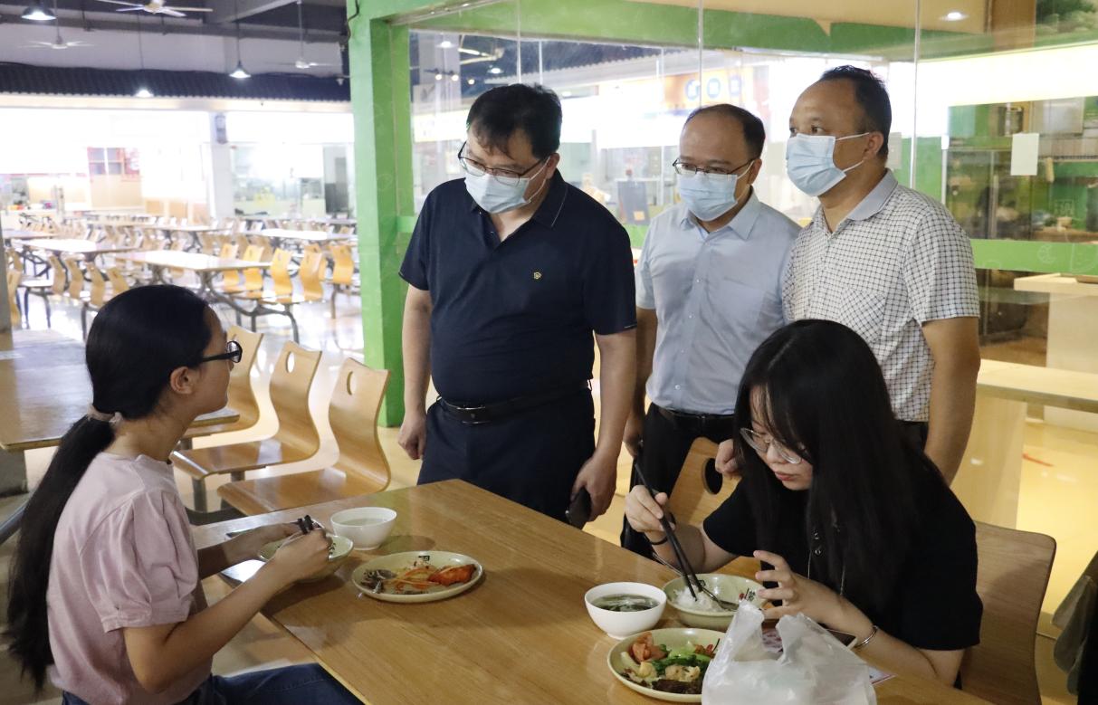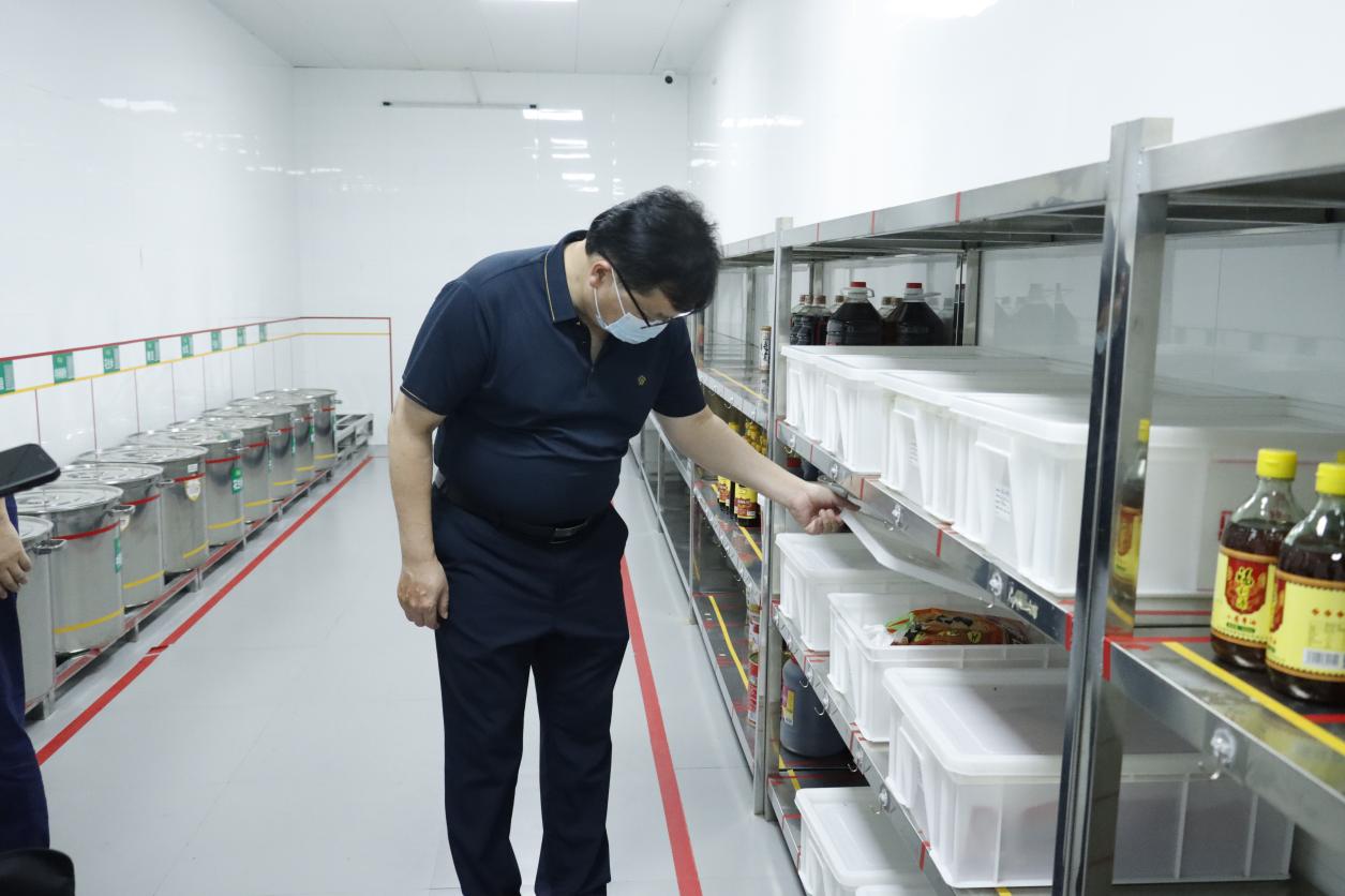 在天工校区中心食堂,魏建克一行认真听取了食堂供餐工作的详细汇报,深入了解食品原料采购渠道、饭菜价格及菜品质量、餐饮器具设施消毒、食堂用电、燃气安全等情况,并现场查看操作间、消毒间卫生及管理情况,仔细检查了食堂留样柜、食品原料采购台账等。