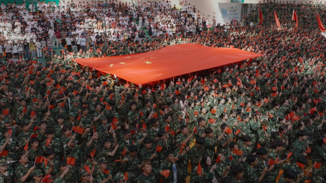 “五星红旗迎风飘扬,胜利歌声多么响亮,歌唱我们亲爱的祖国,从此走向繁荣富强。”全场师生挥舞手中的国旗,齐声高唱《歌唱祖国》,一面巨幅国旗在场地中央缓缓展开,现场红旗翻卷,歌声嘹亮,汇成一片红色的海洋。在中华人民共和国成立75周年之际,beat365人用歌声献礼祖国,歌声响彻beat365体育馆,共同祝愿我们的祖国繁荣昌盛,国泰民安。