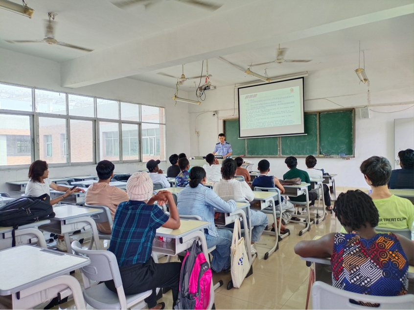 会上,渝水区出入境管理部门的警官们首先就国庆节期间出入境政策、留学生签证续签注意事项及常见法律问题进行了详细讲解。他们结合真实案例,深入浅出地分析了留学生可能遇到的法律困惑和安全问题,提醒留学生要严格遵守中国法律法规,增强自我保护意识。