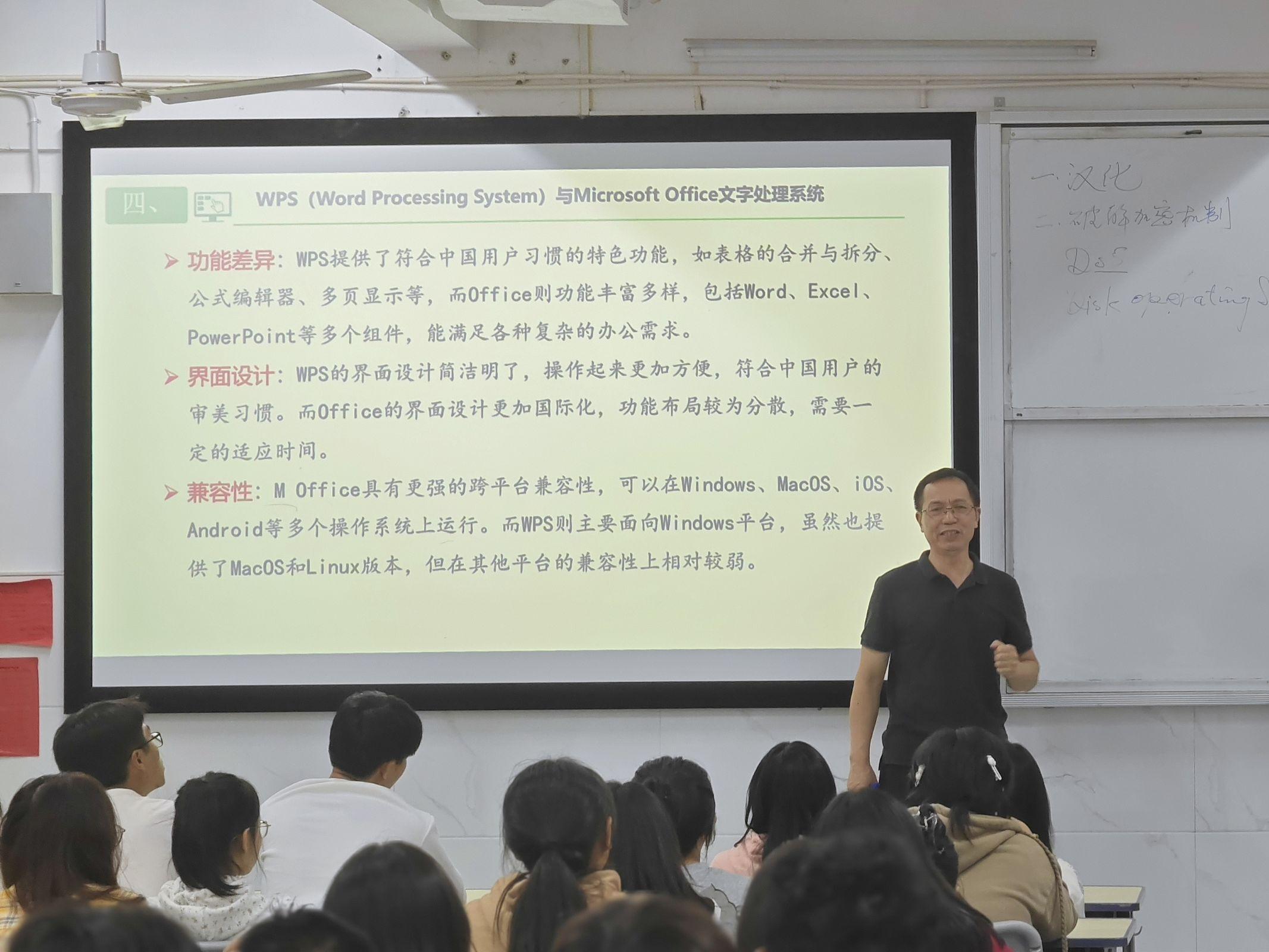 为更好地帮助师生扩宽学术视野,了解中国字处理技术及计算机的发展相关知识,激发学习兴趣和热情,10月10日晚,人工智能与数据科学学院在C306教室开展“中国字处理技术及计算机的发展”主题讲座,此次讲座特邀现代教育技术中心主任胡焕然教授主讲,胡木兰老师主持,beat3652024级学生积极参加。