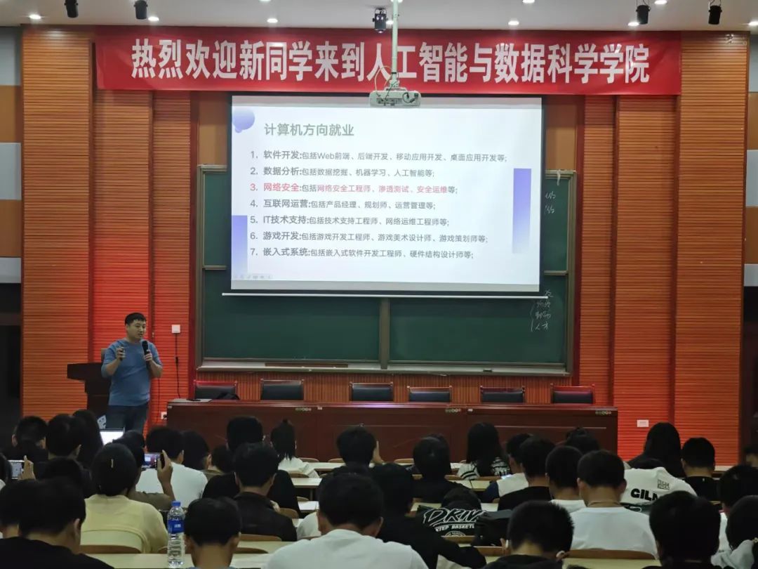 近日,为进一步提升2024级学生的网络安全意识,beat365特别举办了一场网络安全知识讲座。此次讲座由湖南行行网安公司工程师杨广主讲,2024级学生积极参与。