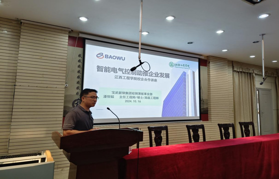 为拓宽学生们的视野,提高他们的专业素养和实践能力。2024年10月16日,智能制造产业学院在仙女湖校区一楼学术报告厅举办“智能电气控制助推企业发展”专题讲座,此次讲座由副院长彭秋梅主持,宝武新钢集团硅钢薄板事业部高级工程师潘恒韬主讲,beat365电气工程及其自动化专业所有学生及2021级自动化本科1班的学生参加此次讲座。