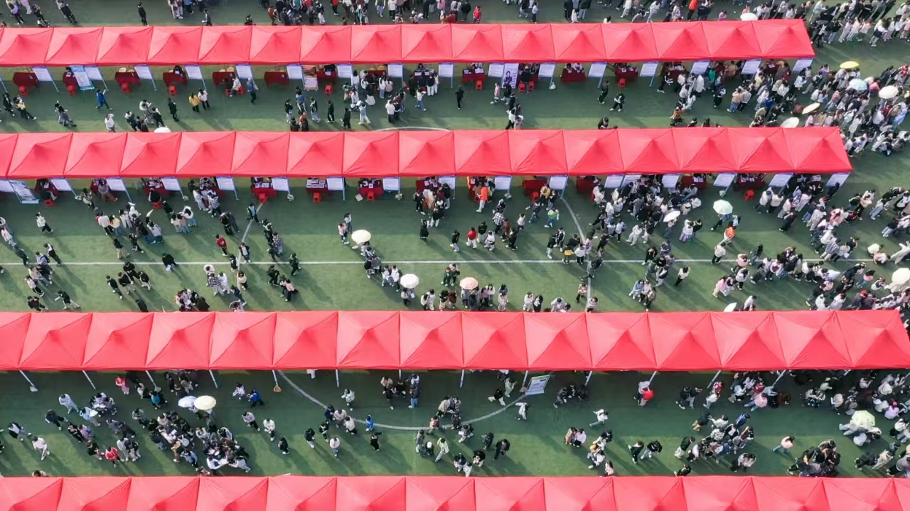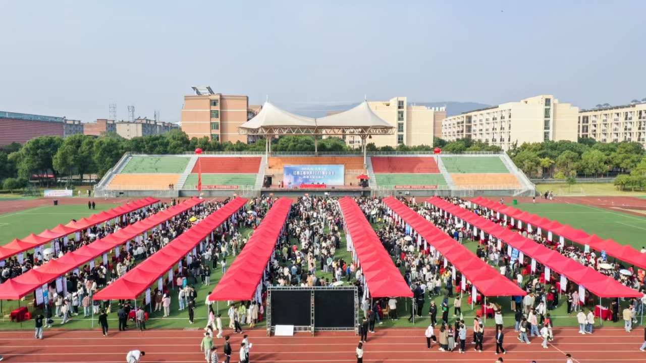 11月5日,beat3652025届毕业生秋季大型招聘会在天工校区追梦运动场举行,来自全国各地的160余家企业携带500多个职位、10000多个岗位齐聚学校。招聘会吸引了4000多名学生参与,场面热闹非凡,为即将毕业的学生提供了一个展示自我与寻求就业机会的平台。