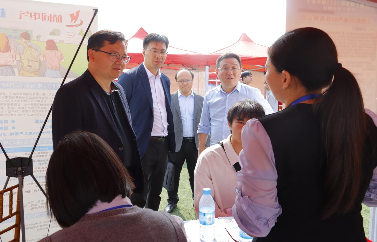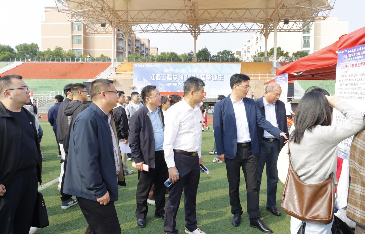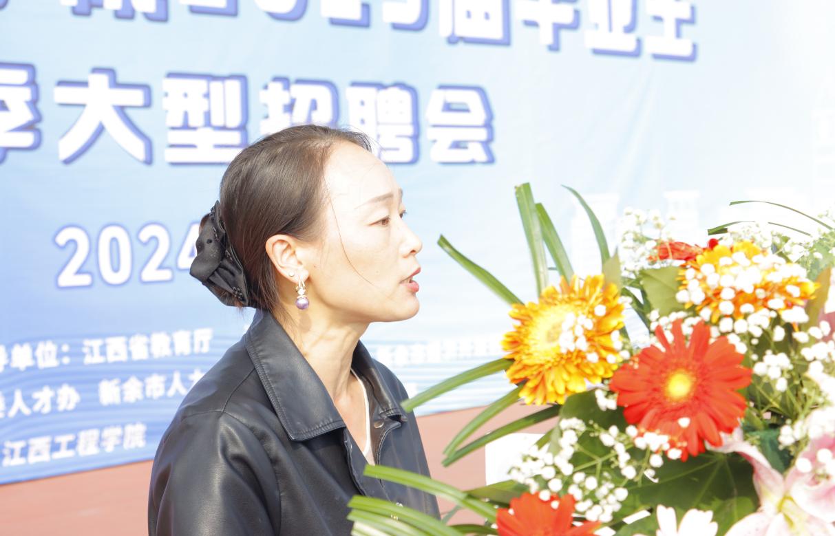 新余市人力资源和社会保障局党组成员、副局长朱春辉,校党委书记、督导专员魏建克,党委副书记、校长史焕平,学校创办人、理事杨名权,党委副书记、副校长冯赟,协讯电子(吉安)有限公司人力资源部主管廖丽珍出席招聘活动。