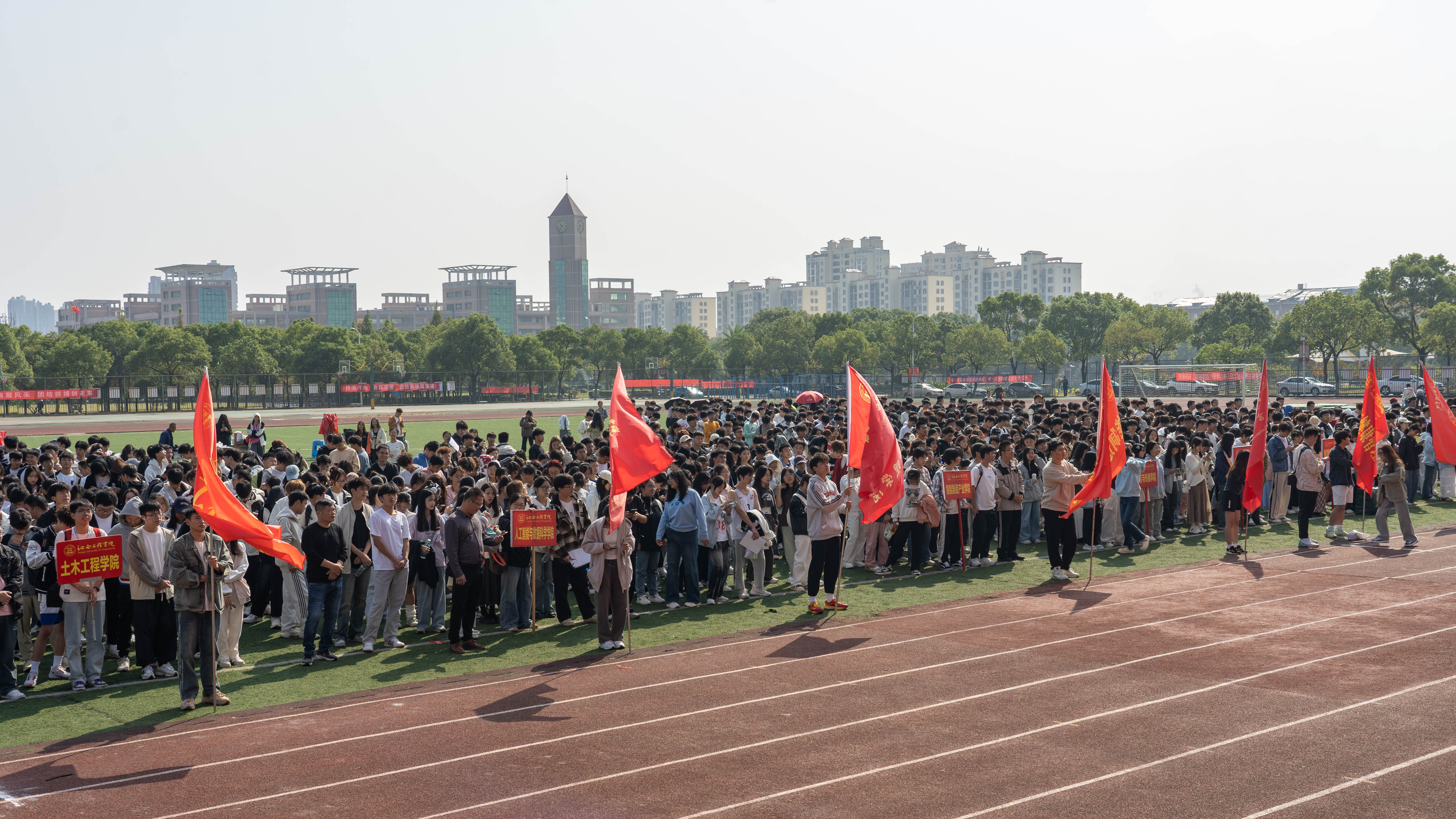 本届运动会上,智能制造产业学院、电子信息工程学院、人工智能与数据科学学院、语言与传播学院、经济管理学院、土木工程学院获团体总分前六名,教育与健康管理学院,智慧产业学院、抱石艺术学院、国际教育学院获优秀组织奖。