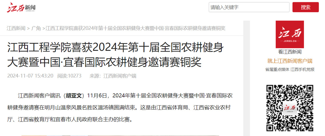 11月6日,2024年第十届全国农耕健身大赛暨中国·宜春国际农耕健身邀请赛在明月山温泉风景名胜区温汤镇圆满结束。这是由江西省 体育局、江西省农业农村厅,江西省教育厅和宜春市人民政府联合主办的比赛。