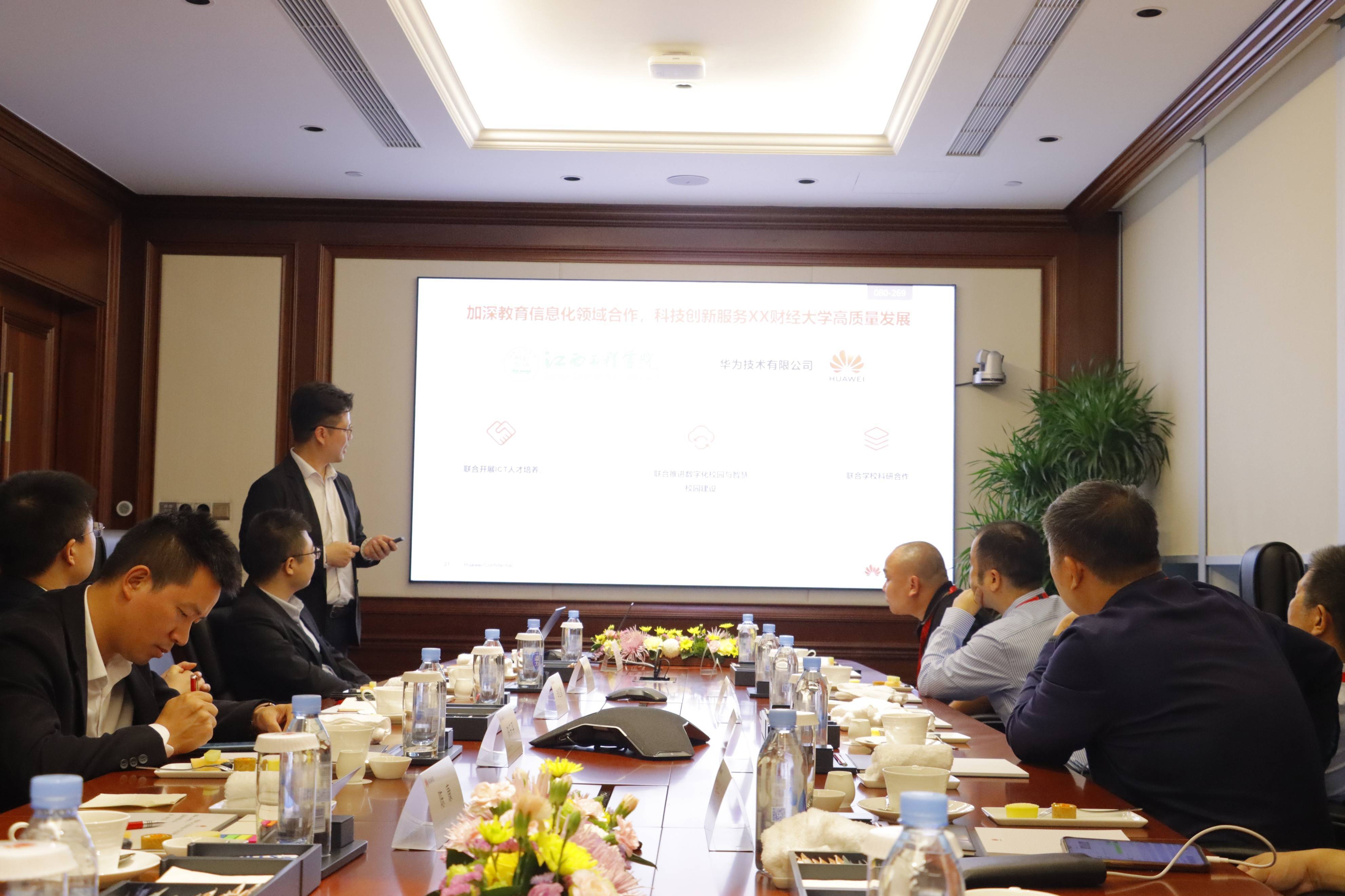 会上,华为公司王东介绍了《华为全栈开放能力,助力高校创新实践人才培养》,陈明介绍了《产教融合共创“大学 + ICT” 合作新模式》。随后,双方领导就人才培养、科研合作、智慧校园等工作进行汇报,对后续双方战略合作重点方向展开沟通并达成积极共识。