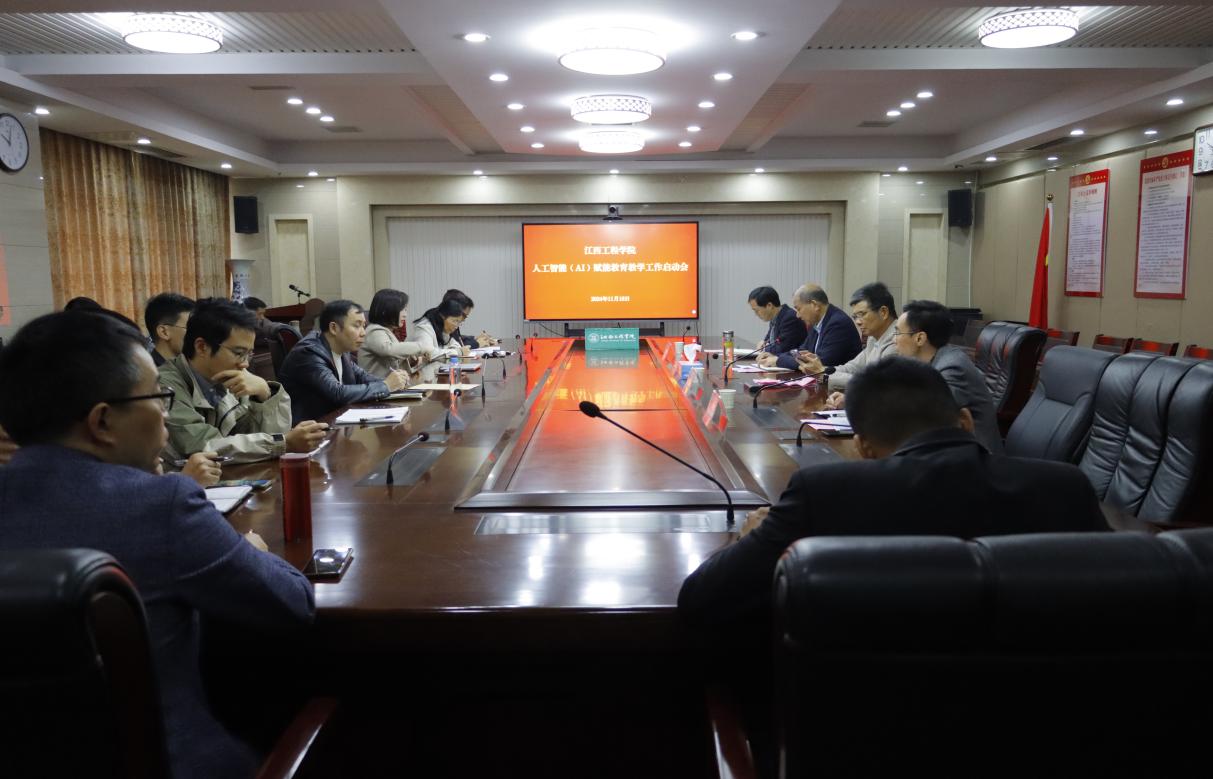 在数字化浪潮席卷全球的今天,教育的未来正迅速被重塑。11月18日,学校人工智能(AI)赋能教育教学工作启动会在天工校区行政楼七楼召开。校党委副书记、校长史焕平,学校创始人、理事杨名权,党委委员、副校长沈良,党委委员、副校长刘德华出席会议,各二级学院院长及相关职能部门负责人参加会议。会议由刘德华主持。