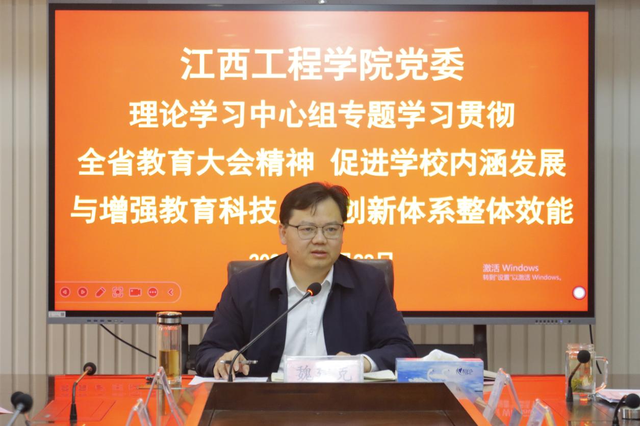 魏建克在总结讲话中强调,要提高政治站位,统一思想,深入领会全国、全省教育大会精神的核心要义,切实把学习成果转化为推动学校事业高质量发展的强大动能,紧扣学校中心任务,坚持立德树人,继续改革创新,着眼国家战略需求培育更多的应用型人才,努力办好人民满意的应用型大学。