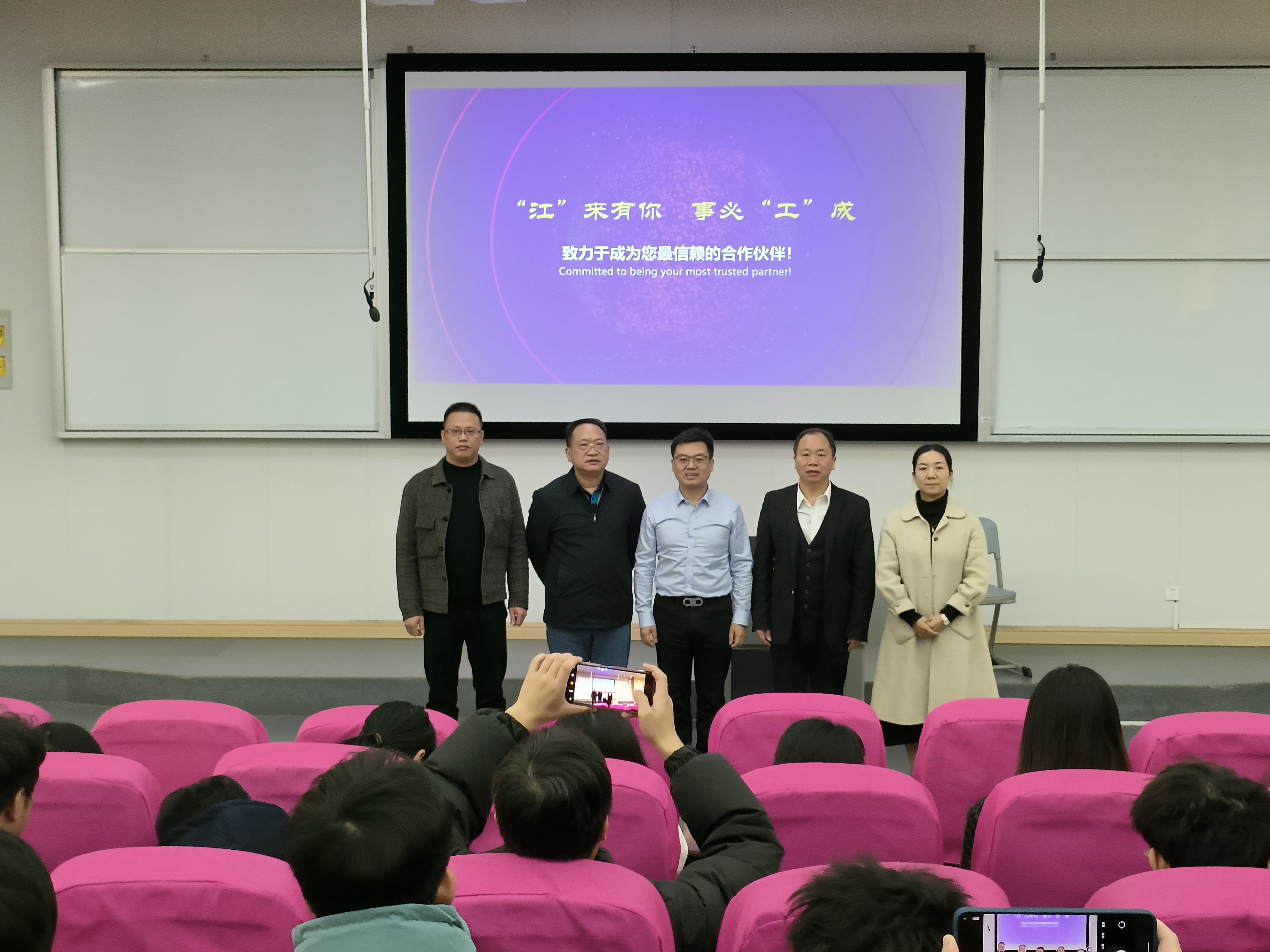 在科技创新与人才培养方面,王烺见解独到。他提出现代社会 “工具+解决方案= AI科技+人才+产业+资本+商业创新=生态+服务”的理念,强调了各要素之间的紧密联系与协同作用。提及母校时,他对母校重视AI技术的举措赞赏有加,母校算力中心成立较早,在教育领域发挥着引领高质量发展的作用,母校的AI数字人在高交会上的惊艳亮相便是有力例证。这一创新成果融合多技术,通过 “AI +助学、助教、助研、助管” 为师生构建智能场景,经数据学习训练后可模拟人类多方面特征实现自然交互。他还详细阐述了算法、算料与算力的关系,指出算力资源在政府、教育、金融、法律、餐饮等多方面的广泛应用。在讲座中,王烺寄语学弟学妹要学好专业技术,锚定前行方向,从大学的模型训练走向社会后的深入发展,最终在自己的专业领域深耕细作,“江” 来有你,事必 “工” 成,这句寄语饱含着他对母校学子的殷切期望与深深祝福。