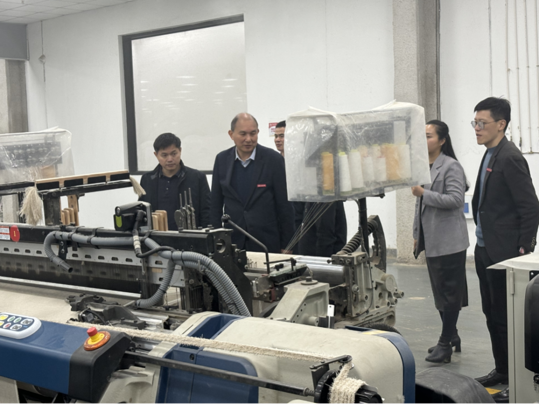 在江西金达泊洋麻纺织品有限公司调研期间,史焕平参观了纺织品生产车间情况,并围绕企业人才需求、毕业生就业等事宜进行了交流。